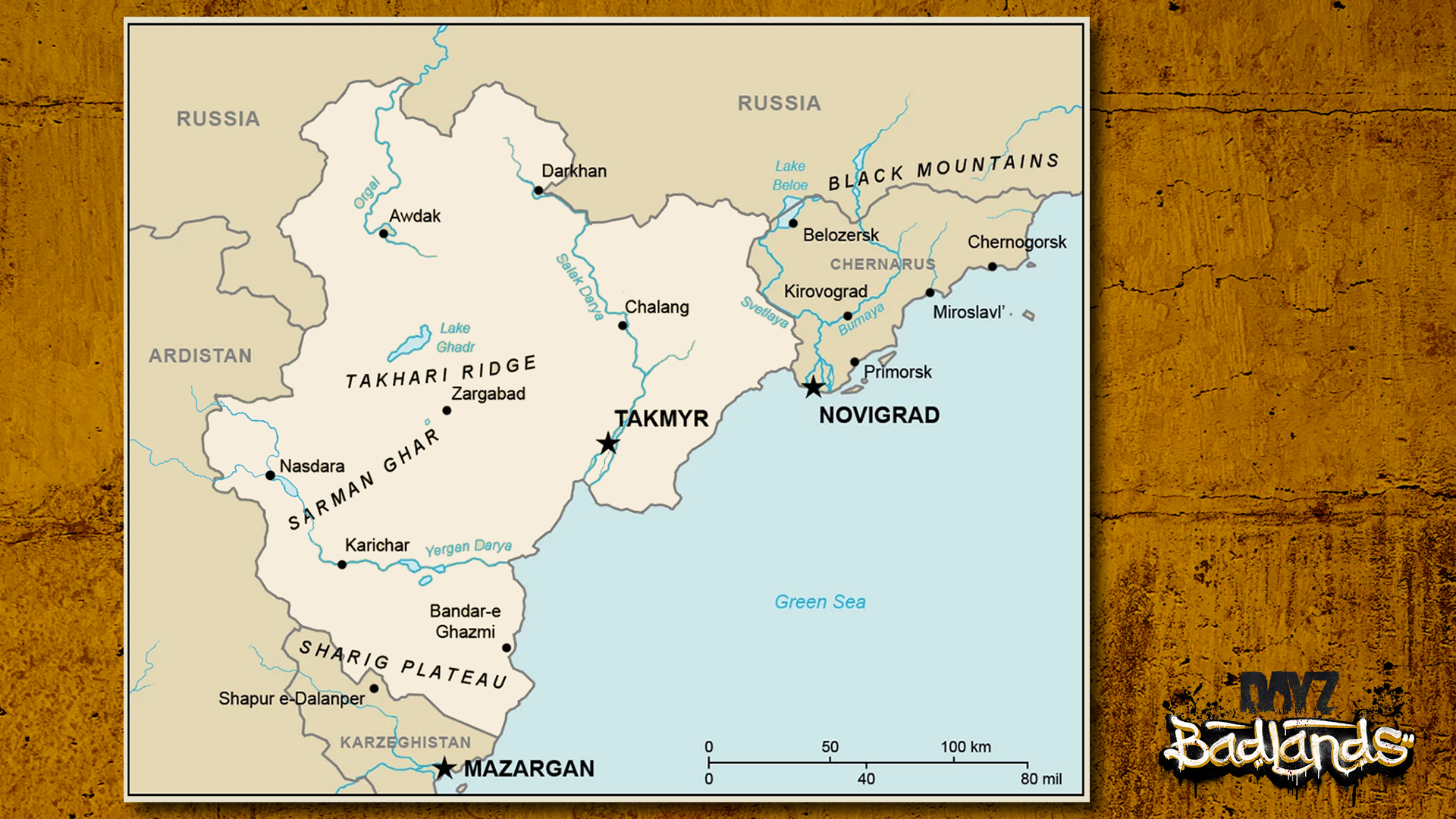 Located at the western border with Ardistan, Nasdara Province has had a turbulent history. Stuck between British and Russian empires, it was annexed by the USSR, ruled by a dictatorship, then taken down by western coalition forces. This was followed by years of various militant groups fighting PMCs and each other before the infection knocked everyone down.